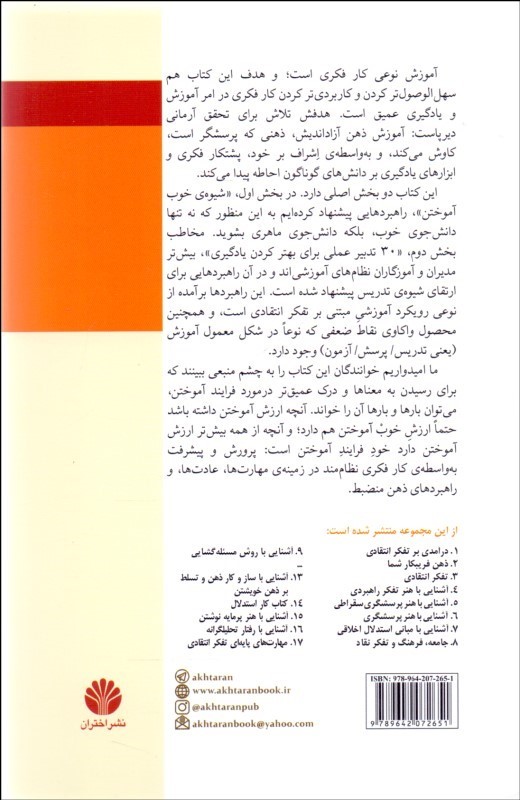 آشنايي با شيوه درس خواندن و خوب آموختن (با استفاده از مفاهيم و ابزارهاي تفكر انتقادي)