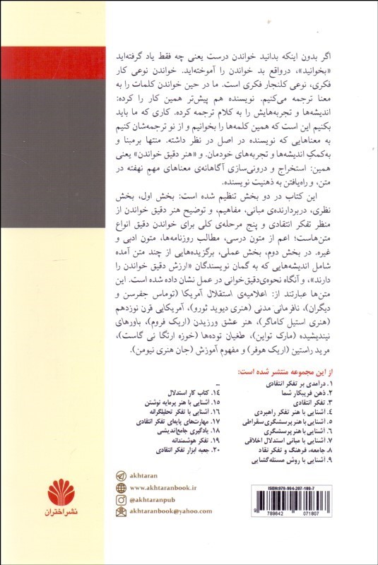 آشنايي با هنر دقيق خواندن/ بر اساس مفاهيم و اصول تفكر انتقادي (مجموعه تفكر نقاد - 11)