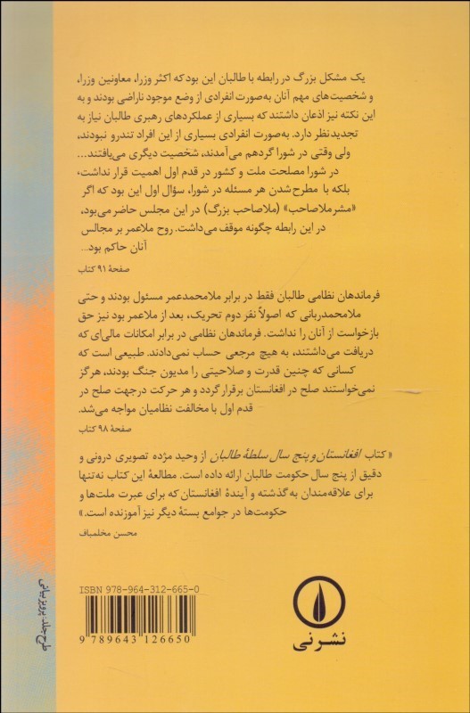 افغانستان و 5 سال سلطه طالبان ناشر: نشر ني نويسنده: وحيد مژده قطع: رقعي نوع جلد: شوميز زبان: فارسي تعداد صفحات: 208 سال انتشار: 1400 نوبت چاپ: 3 وزن: 220 شابک: 9789643126650 قيمت: 68,000تومان موجودي : موجود نیست به من اطلاع بده افزودن به علاقهمندیها به اشتراک بگذارید نظرات محل درج نظر کاربران... کتابهای مرتبط با موضوع کتاب 20% شهريار 300,000تومان 240,000تومان 20% مقدمهاي بر تحليل سياسي 140,000تومان 112,000تومان 20% فهم نظريههاي سياسي 280,000تومان 224,000تومان توسعه در مكاتب متعارض 290,000تومان تاريخ تحول دولت در اسلام 380,000تومان تاريخ ديپلماسي و روابط... 350,000تومان جنگ اوكراين و دورنماي... 100,000تومان 20% مدرنيته سياسي 495,000تومان 396,000تومان از بحران تا فروپاشي (ك... 120,000تومان روابط خارجي ايران (دول... 420,000تومان همراه اين کتاب خريداری شده پرسش از حقيقت انسان 95,000تومان ماكياوللي براي همه 150,000تومان بازگشت كنشگر (نظريه اج... 280,000تومان انگار لال شده بودم (يك... 150,000تومان با ديگري (پژوهشي در تف... 279,000تومان تاملاتي درباره ديكتاتو... 27,000تومان