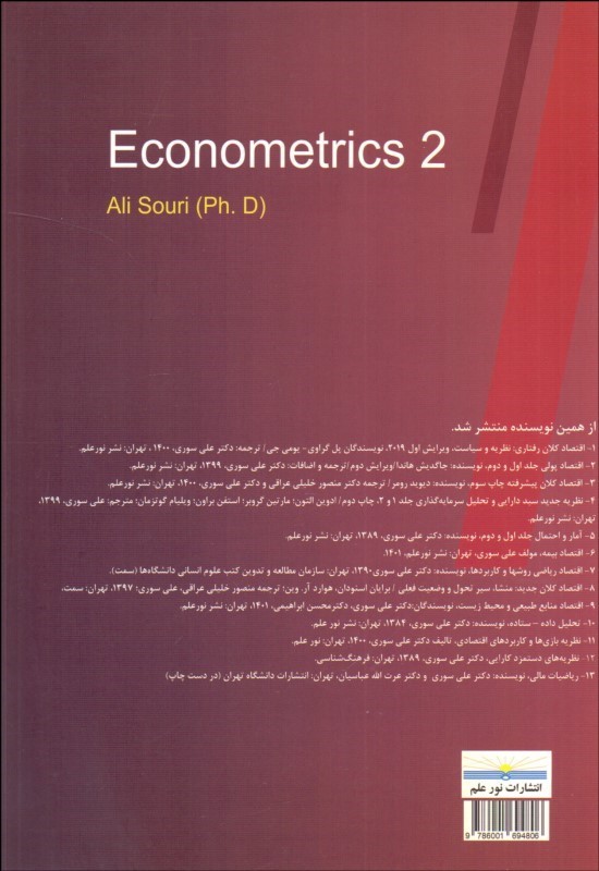اقتصادسنجي 2 پيشرفته همراه با كاربرد Eviews و Stata ناشر: نور علم نويسنده: علي سوري قطع: وزيري نوع جلد: شوميز زبان: فارسي تعداد صفحات: 1340 سال انتشار: 1400 نوبت چاپ: 1 وزن: 1130 شابک: 9786001694806 قيمت: 650,000تومان موجودي : 2 (جلد) تعداد: − + افزودن به سبد Modal title افزودن به علاقهمندیها به اشتراک بگذارید نظرات محل درج نظر کاربران... کتابهای مرتبط با موضوع کتاب 20% حرفهايي با دخترم دربا... 220,000تومان 176,000تومان مباني بازارها و نهادها... 450,000تومان تئوري اقتصاد خرد 700,000تومان 20% مباني اقتصاد سياسي 220,000تومان 176,000تومان چرخههاي افول اخلاق و... 600,000تومان سرمايه 1 (نقد اقتصاد س... 1,200,000تومان 20% مباني بازارها و نهادها... 500,000تومان 400,000تومان گروندريسه ( دستنوشته... 900,000تومان تئوري اقتصاد خرد (تقرب... 450,000تومان اقتصاد كلان پيشرفته 970,000تومان همراه اين کتاب خريداری شده اقتصادسنجي 1 مقدماتي ه... 370,000تومان جوهر جان 25,000تومان برتري بين بلاغت عرب و عجم 15,000تومان روابط صنعتي در سازمان... 1,500تومان جرات اعتماد 2,800تومان مديريت جانشينپروري 12,000تومان مديريت تجربه مصرفكنند... 195,000تومان اقتصادسنجي 3 (تكميلي) 300,000تومان روشهاي بنيادي اقتصاد... 8,000تومان روشهاي اقتصادسنجي 1 210,000تومان نظريه بازيها و كاربرد... 330,000تومان 504 سوال فلسفه حسابرسي 8,000تومان تاريخ ايران (مردم ايران) 750,000تومان تجربه ديني و چرخش هرمن... 12,000تومان گردشگري فرهنگي (ماهيت... 185,000تومان
