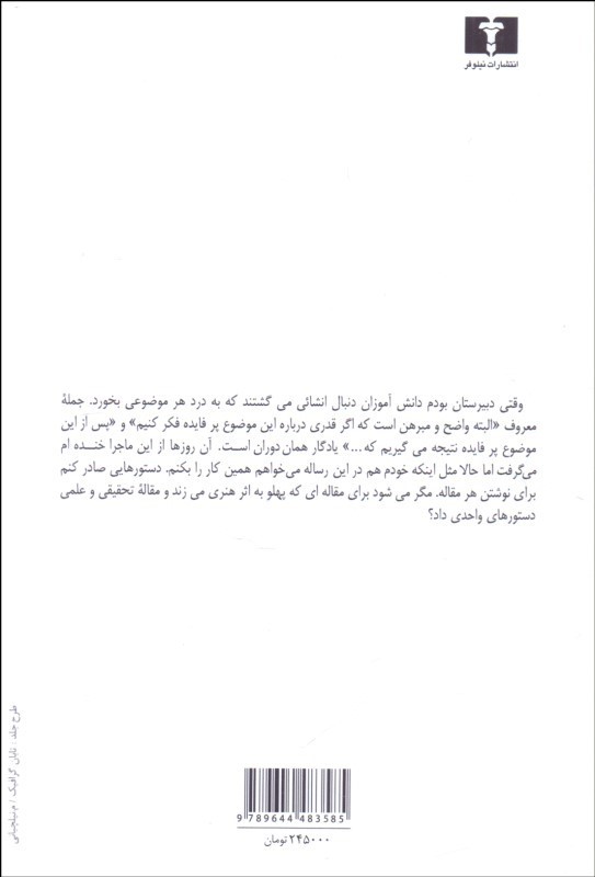 وقتي دبيرستان بودم دانشآموزان دنبال انشائي ميگشتند که به درد هر موضوعي بخورد. جمله معروف «البته واضح و مبرهن است که اگر قدري درباره اين موضوع پرفايده فکر کنيم» و «پس از اين موضوع پرفايده نتيجه ميگيريم که…» يادگار همان دوران است. آنروزها از اين ماجرا خندهام ميگرفت اما حالا مثل اينکه خودم هم در اين رساله ميخواهم همين کار را بکنم. دستورهايي صادر کنم براي نوشتن هر مقاله. مگر ميشود براي مقالهاي که پهلو به اثر هنري ميزند و مقاله تحقيقي و علمي دستورهاي واحدي داد؟