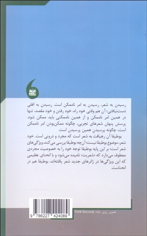 بوطيقا در انحنا (ژانرهاي جديد شعر) ناشر: مانيا هنر نويسنده: محمد آزرم قطع: رقعي نوع جلد: شوميز زبان: فارسي تعداد صفحات: 368 سال انتشار: 1400 نوبت چاپ: 1 وزن: 300 شابک: 9786227424089 قيمت: 98,000تومان موجودي : موجود نیست به من اطلاع بده افزودن به علاقهمندیها به اشتراک بگذارید نظرات محل درج نظر کاربران... کتابهای مرتبط با موضوع کتاب نشانهشناسي (نظريه و عمل) 295,000تومان 20% تازيانههاي سلوك (نقد... 510,000تومان 408,000تومان كتاب كار نگارش و انشا 1 240,000تومان گزيده اشعار خاقاني شرواني 320,000تومان 20% شاعر آينهها (بررسي سب... 350,000تومان 280,000تومان كندوكاوي در پارهاي از... 8,000تومان 20% چگونه شعر بخوانيم 265,000تومان 212,000تومان 20% يادداشتهايي درباره كافكا 90,000تومان 72,000تومان بيان و معاني 250,000تومان حماسه رستم و سهراب 360,000تومان تاريخ ادبيات ايران و ق... 310,000تومان كتاب كار نگارش و انشا 2 200,000تومان 20% زبان و شاعري 120,000تومان 96,000تومان شرح جامع مثنوي معنوي 1 1,150,000تومان استادان و نااستادانم 200,000تومان آشنايي با عروض و قافيه 150,000تومان نظريههاي نقد ادبي معا... 480,000تومان 20% رئاليسم و ضدرئاليسم در... 150,000تومان 120,000تومان بوستان سعدي شيرازي 950,000تومان شرح سي قصيده ناصر خسرو... 250,000تومان
