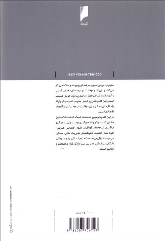 مديران اجرايي امروزه در فضاي پيچيده و متلاطمي کار ميکنند و براي بقا و موفقيت در عرصههاي مختلف کسب و کار، نيازمند شناخت فضا و محيط پيرامون خويش هستند. در اين کتاب بر آنيم تا به شرح و تحليل محيط کسب و کار بپردازيم و راهکارهاي ممکن براي موفقيت هر چه بيشتر بنگاههاي اقتصادي را به صورت مفهومي و کاربردي جستجو کنيم.