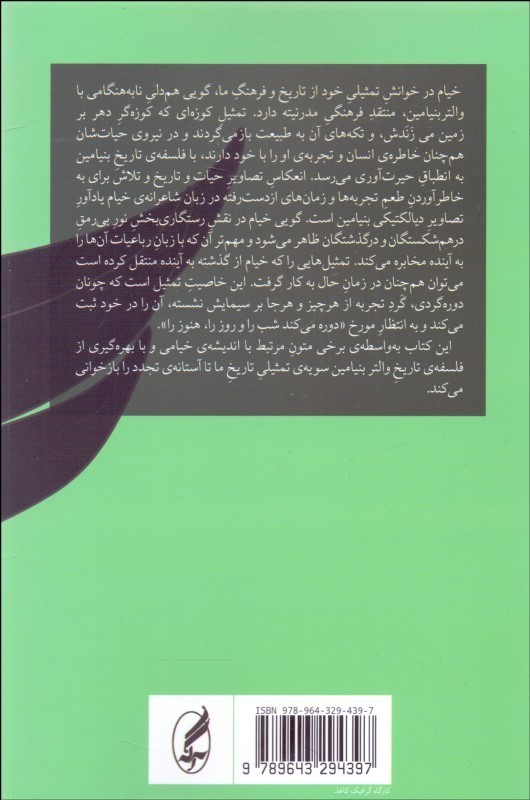 رباعيات خيام و سويه تمثيلي تجدد ناشر: آگه نويسنده: رضا جاويد قطع: رقعي نوع جلد: شوميز زبان: فارسي تعداد صفحات: 220 سال انتشار: 1401 نوبت چاپ: 2 وزن: 230 شابک: 9789643294397 قيمت: 98,000تومان 78,400تومان تخفیف : 19,600تومان موجودي : 2 (جلد) تعداد: − + افزودن به سبد Modal title افزودن به علاقهمندیها به اشتراک بگذارید نظرات محل درج نظر کاربران... کتابهای مرتبط با موضوع کتاب نشانهشناسي (نظريه و عمل) 295,000تومان گزيده اشعار خاقاني شرواني 320,000تومان 20% شاعر آينهها (بررسي سب... 350,000تومان 280,000تومان كندوكاوي در پارهاي از... 8,000تومان 20% چگونه شعر بخوانيم 265,000تومان 212,000تومان 20% يادداشتهايي درباره كافكا 90,000تومان 72,000تومان بيان و معاني 250,000تومان حماسه رستم و سهراب 360,000تومان تاريخ ادبيات ايران و ق... 310,000تومان كتاب كار نگارش و انشا 2 200,000تومان همراه اين کتاب خريداری شده 20% سرگذشت رباعيات (درنگي... 58,000تومان 46,400تومان 20% افسانه پدران ما 160,000تومان 128,000تومان 20% ادبيات جهان چيست؟ 38,000تومان 30,400تومان 20% درآمدي بر فلسفه و ادبيات 55,000تومان 44,000تومان 20% به ياد دكتر عليمحمد ح... 15,000تومان 12,000تومان 20% گفتگو با مترجمان 48,000تومان 38,400تومان 20% آرمانشهر (يوتوپيا) 180,000تومان 144,000تومان 20% سازندگان دنياي كهن 320,000تومان 256,000تومان 20% زمان و زادگاه زرتشت (پ... 90,000تومان 72,000تومان