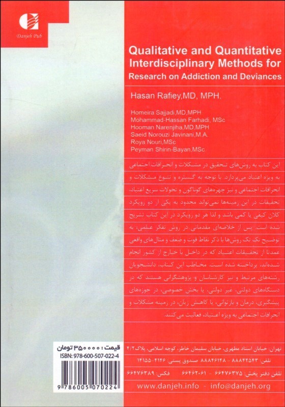 روشهاي تحقيق بين رشتهاي در اعتياد ناشر: دانژه نويسنده: حسن رفيعي قطع: وزيري نوع جلد: شوميز زبان: فارسي تعداد صفحات: 528 سال انتشار: 1399 نوبت چاپ: 2 وزن: 770 شابک: 9786005070224 قيمت: 350,000تومان موجودي : 1 (جلد) تعداد: − + افزودن به سبد Modal title افزودن به علاقهمندیها به اشتراک بگذارید نظرات محل درج نظر کاربران... کتابهای مرتبط با موضوع کتاب 20% روشهاي تحقيق در علوم... 650,000تومان 520,000تومان 20% روش تحقيق كيفي در علوم... 290,000تومان 232,000تومان مقدمهاي بر روشهاي تح... 350,000تومان 20% هنر انجام پژوهش كيفي (... 600,000تومان 480,000تومان روش تحقيق آميخته (به ه... 360,000تومان تدوين پاياننامه رساله... 650,000تومان روشهاي تحقيق در فناور... 110,000تومان درآمدي بر تحقيق كيفي 680,000تومان روش تحقيق در علوم سياس... 200,000تومان روشهاي تحقيق در روانش... 420,000تومان همراه اين کتاب خريداری شده جامعهشناسي اعتياد 55,000تومان جامعهشناسي (مباني اصو... 392,000تومان دستگاه نظري جرج هربرت... 120,000تومان 20% روش تحقيق كيفي در علوم... 290,000تومان 232,000تومان نظريه نوين مددكاري اجت... 430,000تومان جامعهشناسي كارتن خوابي 5,000تومان جامعهشناسي براي مددكا... 12,500تومان راهنماي عملي تدوين پاي... 30,000تومان روشهاي آماري در روانش... 250,000تومان آسيبشناسي اجتماعي (جا... 109,000تومان رويكردهاي نظري هفتگانه... 39,000تومان شخصيت عصبي زمانه ما 400,000تومان تضادهاي دروني ما 220,000تومان نظريه رفاه 30,000تومان نظريههاي جامعهشناسي 28 170,000تومان