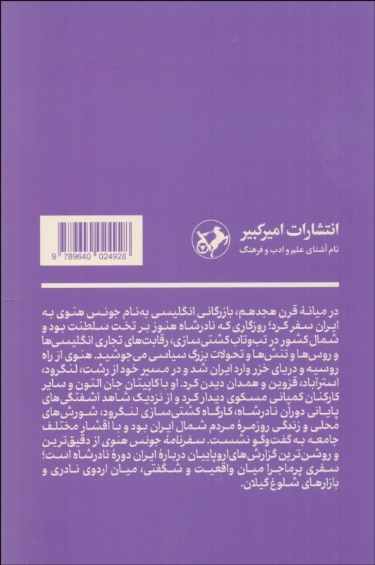 سفرنامه جونس هنوي (ايران در واپسين سالهاي حكومت نادرشاه) ناشر: اميركبير نويسنده: جونس هنوي قطع: رقعي نوع جلد: شوميز زبان: فارسي تعداد صفحات: 284 سال انتشار: 1404 نوبت چاپ: 1 وزن: 220 شابک: 9789640024928 قيمت: 390,000تومان موجودي : 1 (جلد) تعداد: − + افزودن به سبد Modal title افزودن به علاقهمندیها به اشتراک بگذارید نظرات محل درج نظر کاربران... کتابهای مرتبط با موضوع کتاب تكنوكراسي و سياستگذار... 300,000تومان برگ اضافي (يادداشتهاي... 160,000تومان آسمان لندن زياده ميبا... 189,000تومان 20% زندگي با پيكاسو 385,000تومان 308,000تومان سعدي 265,000تومان از كاخ شاه تا زندان اوين 450,000تومان 20% چرا سفر ميكنيد؟ 375,000تومان 300,000تومان انديشه انقلابي ماركس 230,000تومان حاج آخوند 340,000تومان تجدد آمرانه (جامعه و د... 250,000تومان