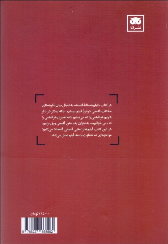 فيلم به مثابه فلسفه ناشر: نشر لگا نويسنده: صالح نجفي قطع: رقعي نوع جلد: شوميز زبان: فارسي تعداد صفحات: 242 سال انتشار: 1402 نوبت چاپ: 3 وزن: 230 شابک: 9786009770502 قيمت: 245,000تومان موجودي : موجود نیست به من اطلاع بده افزودن به علاقهمندیها به اشتراک بگذارید نظرات محل درج نظر کاربران... کتابهای مرتبط با موضوع کتاب 20% بينايي و مدرنيته 285,000تومان 228,000تومان مبادي سواد بصري 250,000تومان جاي خالي معنا (مدرنيسم... 30,000تومان 20% اكران مدرنيسم 655,000تومان 524,000تومان هنر رمان 145,000تومان خلاصه تاريخ هنر 500,000تومان مباني سينما 1 170,000تومان هنر در گذر زمان 2,850,000تومان 20% طبيعت قشم 50,000تومان 40,000تومان آيسخولوس (اورستيا/پروم... 750,000تومان همراه اين کتاب خريداری شده فيلمفارسي چيست 260,000تومان واژهنامه جامع اديان و... 490,000تومان مهاجرت نخبگان (چالشها... 320,000تومان چگونه تغيير كنيم 130,000تومان فهرست كتاب (فصلي نو آغ... 230,000تومان گزارش آخرين تابستان 300,000تومان فيلمهاي پازلي 280,000تومان 20% فيلم و فلسفه (جدي گرفت... 165,000تومان 132,000تومان سينماي آمريكا (كارگردا... 396,000تومان گربهاي كه عاشق باران بود 34,000تومان 20% چرا روانكاوي (سه مداخله) 165,000تومان 132,000تومان 20% از منظر تئاتريكاليته (... 20,000تومان 16,000تومان دستور زبان نما 170,000تومان جاي خالي معنا (مدرنيسم... 30,000تومان 20% گزيده مقالات اساسي كاي... 320,000تومان 256,000تومان