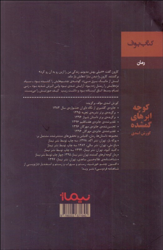كوچه ابرهاي گمشده ناشر: نيماژ نويسنده: كورش اسدي قطع: رقعي نوع جلد: شوميز زبان: فارسي تعداد صفحات: 312 سال انتشار: 1397 نوبت چاپ: 4 وزن: 335 شابک: 9786003671645 قيمت: 280,000تومان موجودي : 1 (جلد) تعداد: − + افزودن به سبد Modal title افزودن به علاقهمندیها به اشتراک بگذارید نظرات محل درج نظر کاربران... همراه اين کتاب خريداری شده انتخاب مصرفكننده آموز... 15,000تومان تحولات قومي در ايران ع... 3,000تومان سفينه بولونيا 290,000تومان تاريخ ايران از آغاز اس... 1,250,000تومان احتمال عكس و انزوا (مج... 20,000تومان ده گونه نوآوري 374,000تومان مباني نظري مردمشناسي 130,000تومان به صداي زمين گوش كن (ن... 60,000تومان گزيده قابوسنامه 8,500تومان راهكارهاي پيشتازان بازار 7,500تومان عروس فريبكار 850,000تومان دانشگاههاي جهان و شرا... 15,000تومان تيمسازي (راهبردهاي عل... 1,700تومان خلاف دموكراسي 300تومان زبانشناسي و نقد ادبي 80,000تومان