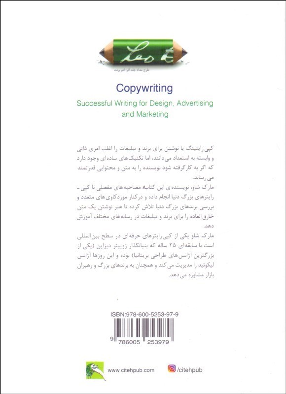 كپيرايتينگ (نوشتن موفق براي تبليغات برندينگ و بازاريابي) ناشر: سيته مترجم: آتنا مقدم نويسنده: مارك شاو قطع: وزيري نوع جلد: شوميز زبان: فارسي تعداد صفحات: 268 سال انتشار: 1400 نوبت چاپ: 2 وزن: 410 شابک: 9786005253979 قيمت: 75,000تومان موجودي : موجود نیست به من اطلاع بده افزودن به علاقهمندیها به اشتراک بگذارید نظرات محل درج نظر کاربران... کتابهای مرتبط با موضوع کتاب مديريت تجربه مصرفكنند... 195,000تومان بازاريابي املاك و مستغلات 150,000تومان مديريت برند (پژوهش تئو... 200,000تومان گاو بنفش 145,000تومان مديريت بازاريابي (تجزي... 880,000تومان مديريت بازاريابي در صن... 320,000تومان مدل كسب و كار شما 368,000تومان نسل چهارم بازاريابي (ح... 230,000تومان نسل سوم بازاريابي (از... 312,000تومان طراحي ارزش پيشنهادي 424,000تومان همراه اين کتاب خريداری شده مديريت استراتژيك برند... 250,000تومان چگونه تبليغ پولساز بن... 25,000تومان چگونه برندها در ذهن ما... 314,000تومان 20% حرفهايي با دخترم دربا... 220,000تومان 176,000تومان صنعت پروپاگاندا (افكار... 70,000تومان 20% استعارهها از كجا ميآ... 470,000تومان 376,000تومان هفت رويكرد به مديريت ب... 215,000تومان 20% استعاره (مقدمهاي كارب... 75,000تومان 60,000تومان برندسازي در هفت گام (ر... 250,000تومان 20% زبان ذهن و فرهنگ (مقدم... 280,000تومان 224,000تومان اصول اقناع و تبليغ 43,000تومان تبليغات و اقناع 300,000تومان مديريت استراتژيك برند... 250,000تومان تبليغات با بيان ساده 15,000تومان روانشناسي تصوير ذهني (... 345,000تومان