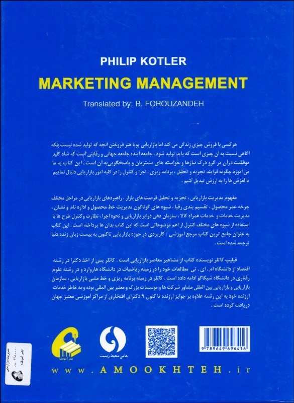 کتاب «مديريت بازاريابي: تجزيهوتحليل، برنامهريزي، اجرا و کنترل» نه فقط معتبرترين کتاب مرجع در جامعهي دانشگاهي جهان است، بلکه بهترين مرجعي است که هر کسي که بخواهد در عمل از اصول و تکنيکهاي کاربردي بازاريابي استفاده کند ميتواند به آن مراجعه نمايد. اين کتاب هماکنون به 20 زبان زنده دنيا ترجمه شده است.