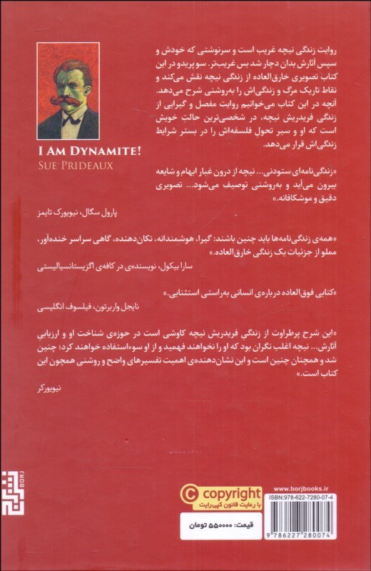 من ديناميتم ( سرگذشت فريدريش نيچه) ناشر: نشر برج مترجم: امين مدي نويسنده: سو پريدو قطع: رقعي نوع جلد: گالينگور زبان: فارسي تعداد صفحات: 520 سال انتشار: 1403 نوبت چاپ: 8 وزن: 490 شابک: 9786227280074 قيمت: 550,000تومان موجودي : 1 (جلد) تعداد: − + افزودن به سبد Modal title افزودن به علاقهمندیها به اشتراک بگذارید نظرات محل درج نظر کاربران... همراه اين کتاب خريداری شده 20% فرهنگبان 6 45,000تومان 36,000تومان 20% خودكشي در ايران ( تبيي... 60,000تومان 48,000تومان خاك آمريكا 355,000تومان 20% لندنيهاي تنها 30,000تومان 24,000تومان آنجا كه وطن بود (گفتگو... 250,000تومان صراحت تمام عيار 584,000تومان درسنامهي نحو زبان فارسي 220,000تومان تاديب (روايت يك تحقير) 125,000تومان عشق گوش عشق گوشوار 84,000تومان روايت بازگشت 285,000تومان سه نمايشنامه (عروسي خو... 280,000تومان كتاب ايوب 220,000تومان درسهاي نيچه براي زندگي 140,000تومان سرگذشت پنجاه كنشگر اق... 800,000تومان 20% در ميانه امنيت و ناامني 25,000تومان 20,000تومان