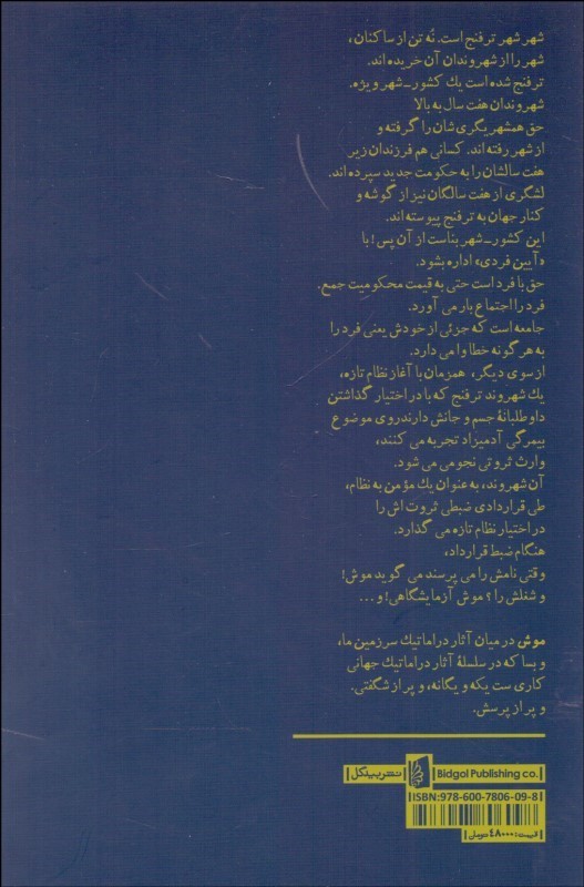 موش (نمايشنامه) ناشر: بيدگل نويسنده: بهمن فرسي قطع: رقعي نوع جلد: شوميز زبان: فارسي تعداد صفحات: 122 سال انتشار: 1400 نوبت چاپ: 3 وزن: 135 شابک: 9786007806098 قيمت: 48,000تومان موجودي : موجود نیست به من اطلاع بده افزودن به علاقهمندیها به اشتراک بگذارید نظرات محل درج نظر کاربران... کتابهای مرتبط با موضوع کتاب 20% مكبث (همراه با متن انگ... 360,000تومان 288,000تومان 20% آنتيگونه (نمايشنامه) 155,000تومان 124,000تومان دستهاي آلوده (نمايشنامه) 310,000تومان سه خواهر (نمايشنامه) 120,000تومان آواز قو و چند تكپرده... 120,000تومان خرده جنايتهاي زناشويي 125,000تومان سلطان مار (نمايشنامه) 150,000تومان تاجر ونيزي 195,000تومان اتاقي در هتل لندن (نما... 100,000تومان 20% توراندخت يا كنگره توج... 60,000تومان 48,000تومان خانه برناردا آلبا (نما... 70,000تومان 20% كلاس پيشرفته (نمايشنامه) 12,000تومان 9,600تومان چشمانداز (فيلمنامه) 80,000تومان ضحاك (نمايشنامه) 75,000تومان سه برخواني (اژدهاك/ آر... 150,000تومان خاطرات هنرپيشه نقش دوم... 150,000تومان اتللو (نمايشنامه) 140,000تومان مرگ يزدگرد (نمايشنامه) 150,000تومان كتاب ايستر (تئاتر به م... 35,000تومان جايگاه من (نمايشنامه) 80,000تومان