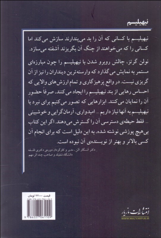نيهيليسم ناشر: مازيار مترجم: تورج حوري نويسنده: نولن گرتز قطع: رقعي نوع جلد: شوميز زبان: فارسي تعداد صفحات: 128 سال انتشار: 1399 نوبت چاپ: 1 وزن: 160 شابک: 9786227061109 قيمت: 100,000تومان موجودي : موجود نیست به من اطلاع بده افزودن به علاقهمندیها به اشتراک بگذارید نظرات محل درج نظر کاربران... کتابهای مرتبط با موضوع کتاب اخلاق 295,000تومان 20% چنين گفت زرتشت (شوميز) 535,000تومان 428,000تومان 20% غروب بتها 180,000تومان 144,000تومان 20% تبارشناسي اخلاق 300,000تومان 240,000تومان منطق يا فن انديشيدن (... 310,000تومان شما بيشماريد 69,000تومان ذهن فريبكار شما/ راهنم... 260,000تومان درباره طبيعت انسان 180,000تومان 20% روشننگري چيست؟ روشني... 250,000تومان 200,000تومان فراسوي نيك و بد (پيش د... 460,000تومان 20% نيچه 2 450,000تومان 360,000تومان 20% فلسفه كانت (بيداري از... 685,000تومان 548,000تومان 20% گذار از مدرنيته (نيچه... 300,000تومان 240,000تومان 20% سوسياليسم (درآمدي كوتاه) 130,000تومان 104,000تومان دوازده نظريه درباره طب... 850,000تومان منطق صوري 390,000تومان رساله الهي سياسي 650,000تومان نظم گفتار (درس افتتاحي... 170,000تومان 20% آرمانشهر (يوتوپيا) 180,000تومان 144,000تومان 20% بازگشت به اسپينوزا (بد... 210,000تومان 168,000تومان همراه اين کتاب خريداری شده امنيت ملي در جهان سوم 36,000تومان درآمدي بر زيباشناسي اس... 260,000تومان بوف كور هدايت رماني غربي 145,000تومان مردان هياهو ميكنند زن... 5,000تومان تاريخ تمدن به همراه مق... 13,000,000تومان تاريخچه اروميه (يادداش... 1,400تومان محقق خوانساري 3,500تومان مفاهيم و كاربردهاي آمار 7,400تومان ايمان آبي دريا 800تومان ارغنون 1 (فرهنگ و تكنو... 99,000تومان اصول حسابداري 1 65,000تومان بعد فرهنگي توسعه به سو... 800تومان هويت انساني (انسانيت ا... 300,000تومان شرح جامع مثنوي معنوي 1 1,150,000تومان ذهن و زبان حافظ 680,000تومان