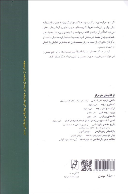 بهعبارت سادهتر ترجمه عبارت است از برگردان متني از زبان مبدأ به زبان مقصد بدون کوچکترين افزايش يا کاهش در صورت و معني.