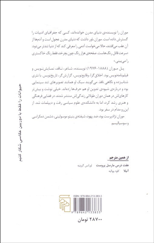 هنر مردن ناشر: مركز مترجم: اصغر نوري نويسنده: پل موران قطع: رقعي نوع جلد: شوميز زبان: فارسي تعداد صفحات: 96 سال انتشار: 1402 نوبت چاپ: 6 وزن: 80 شابک: 9789642133833 قيمت: 77,000تومان موجودي : 1 (جلد) تعداد: − + افزودن به سبد Modal title افزودن به علاقهمندیها به اشتراک بگذارید نظرات محل درج نظر کاربران... همراه اين کتاب خريداری شده پسامدرنيته 65,000تومان سياستپردازي و نيرنگ 330,000تومان هنر نوشتن و مهارتهاي... 18,000تومان بزرگسالان بيقرار همان... 3,500تومان حقوق منظوم 5,000تومان شيوه عملي مقالهنويسي 23,000تومان 10 اصل اثربخشي استراتژي 4,400تومان اصول نگارش طرح تحقيق (... 35,000تومان تدوين پاياننامه رساله... 650,000تومان متون شرقي و سنتي زرتشت... 9,000تومان اصول علم سياست 34,000تومان مسايل آموزش و پرورش اي... 29,000تومان ضماير 195,000تومان ميل به معنا 135,000تومان طلاق معنوي (طلاق به عن... 2,500تومان
