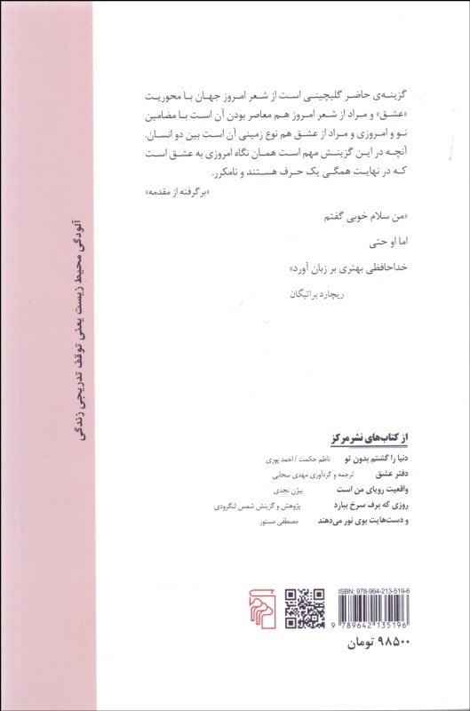 يك حرف نامكرر (گزيدهاي از شعر عاشقانهي جهان) ناشر: مركز مترجم: احمد پوري نويسنده: گروه نويس قطع: رقعي نوع جلد: شوميز زبان: فارسي تعداد صفحات: 200 سال انتشار: 1401 نوبت چاپ: 1 وزن: 190 شابک: 9789642135196 قيمت: 98,500تومان موجودي : موجود نیست به من اطلاع بده افزودن به علاقهمندیها به اشتراک بگذارید نظرات محل درج نظر کاربران... کتابهای مرتبط با موضوع کتاب نشانهشناسي (نظريه و عمل) 295,000تومان گزيده اشعار خاقاني شرواني 320,000تومان 20% شاعر آينهها (بررسي سب... 350,000تومان 280,000تومان كندوكاوي در پارهاي از... 8,000تومان 20% چگونه شعر بخوانيم 265,000تومان 212,000تومان 20% يادداشتهايي درباره كافكا 90,000تومان 72,000تومان بيان و معاني 250,000تومان حماسه رستم و سهراب 360,000تومان تاريخ ادبيات ايران و ق... 310,000تومان كتاب كار نگارش و انشا 2 200,000تومان