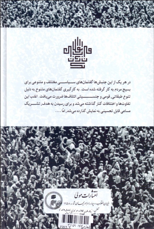 يك قرن انقلاب در ايران (جنبشهاي اجتماعي در ايران) ناشر: مولي مترجم: حسن اسدي نويسنده: جان فوران قطع: رقعي نوع جلد: گالينگور زبان: فارسي تعداد صفحات: 414 سال انتشار: 1400 نوبت چاپ: 3 وزن: 700 شابک: 9789642671601 قيمت: 490,000تومان موجودي : 1 (جلد) تعداد: − + افزودن به سبد Modal title افزودن به علاقهمندیها به اشتراک بگذارید نظرات محل درج نظر کاربران... کتابهای مرتبط با موضوع کتاب اسلحه ميكروب و فولاد (... 860,000تومان 20% نظريه اجتماعي مدرن از... 320,000تومان 256,000تومان 20% قواعد روش جامعهشناسي 250,000تومان 200,000تومان پويش كيفي و طرح پژوهش 240,000تومان 20% طرح تحقيق در تحقيقات ا... 550,000تومان 440,000تومان 20% جامعهشناسي جوانان ايران 310,000تومان 248,000تومان 20% زندگي روزمره تهيدستان... 315,000تومان 252,000تومان 20% هويت ايران (كاوش در نم... 400,000تومان 320,000تومان 20% فلسفه علوم اجتماعي (بن... 355,000تومان 284,000تومان 20% كارگران بيطبقه (توان... 235,000تومان 188,000تومان همراه اين کتاب خريداری شده ايران عصر صفوي 250,000تومان اصول مديريت از زبان بز... 120,000تومان مقاومت شكننده (تاريخ ت... 480,000تومان مثنوي منثور سپهر دفتر دوم 85,000تومان نظريه كنش (دلايل عملي... 320,000تومان تاملي درباره ايران (دي... 222,000تومان روش و نظريه در علوم سياسي 275,000تومان تغيير اجتماعي و توسعه... 125,000تومان فرهنگ سياسي ايران 20,000تومان زندگي روزمره در ايران... 220,000تومان ترلان 170,000تومان تاملي درباره ايران (مك... 210,000تومان پژوهش در علوم سياسي (ر... 250,000تومان تبيين در علوم اجتماعي... 350,000تومان دولتهاي توسعهگرا (پي... 237,600تومان